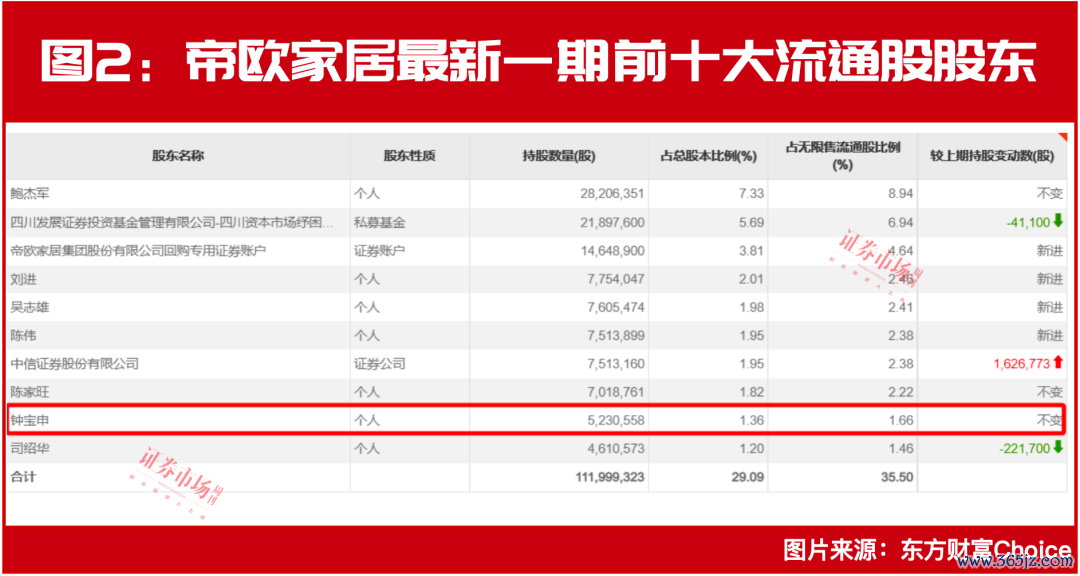 与葛卫东有相似操作的还有“北交所举牌第一人”钟宝申。帝欧家居截至2月6日的前十大流通股股东名单显示,相比2023年三季度末, 钟宝申继续对公司持股不变(见图2)。
