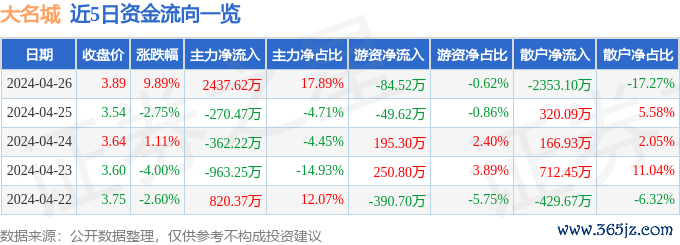 4月26日的资金流向数据方面,主力资金净流入2437.62万元,占总成交额17.89%,游资资金净流出84.52万元,占总成交额0.62%,散户资金净流出2353.1万元,占总成交额17.27%。