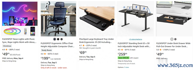 仅仅说亚马逊这个平台,Flexispot品牌下产品评分维持在4分以上,更有产品评分达满分。